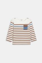 Pour les marins en herbe, un tee-shirt manches longues esprit marinière. Joli jeu de rayures et poche poitrine. Passage de tête facile des petits grâce aux deux pressions de chaque côté des épaules.