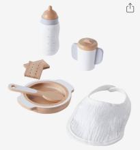 Voici la description : "Ce ravissant coffret cape de bain + gant Biche en coloris blush est un indispensable pour se lover dans la douceur après le bain de bébé. Une touche de tendresse à ajouter à votre liste de naissance !"