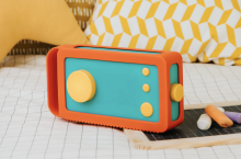 Le Tapis de parc 75 x 95 cm de Jollein est double face, avec un des côtés en tricot et l’autre en fleece.