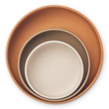 ENSEMBLE DE BOL POUR ENFANTS DURABLE - LOT DE 3 L'ensemble de bols Audrey est fabriqué à partir de silicone doux et exempt de produits chimiques nocifs et parfait pour le petit-déjeuner, le déjeuner et le dîner - à la maison ou à l’extérieur. Existe aussi en gobelet et en assiette. Composition: 100 % silicone Matériau
