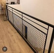 Réalisation d'un filet de protection sur mesure pour le garde corps de notre escalier afin de sécuriser la descente.