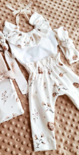 Se compose d'un pantalon, un col, un body brodé et un bonnet turban.