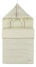 Sa capuche en matière très douce, se fixe par boutons pression et s'ôte très facilement.