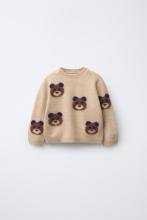 Pull en maille à col rond et manches longues. Fermeture à boutons sur l'épaule. Motif oursons sur le devant.