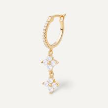 Boucle chaînette en Argent S925 doré à l'Or fin 24K. Double fleurs serties de cristaux blanc et reliées à une chaînette pendante.