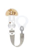Une boucle flexible permet, en un tour de main, d’attacher une sucette à anneau, un anneau de dentition,…