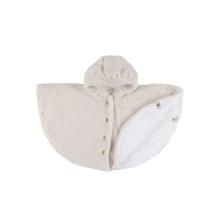 Poncho beige Noukie’s en fausse fourrure douce avec doublure sherpa et capuche à oreilles de lapin. Chaud, confortable et élégant pour bébé.