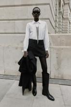 Chemise avec col à revers et manches longues avec des lacets. Fermeture boutonnée sur le devant dissimulée sous un rabat.