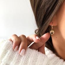 Création Instants Plaisirs Créoles en plaqué or 3 microns Créoles à enfiler, composées d'une médaille martelée (0,8cm) & d'une pierre onyx noire pendante Diamètre créole : 1,5cm Résistent à la vie quotidienne, au soleil, à l'eau... Ses vertus FORCE : Cette pierre noire possède de nombreuses vertus, telles que la st