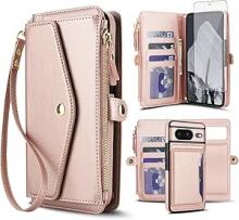 Compatible with Magsafe RFID Screen Protector Crossbody Lanyard Strap Flip Card Holder Slot Zipper Cell Purse Pixel8 Eight Women Men Rose Gold : Amazon.ca: Electronics