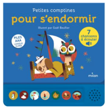 Sept comptines célèbres pour s endormir en douceur, dans un livre adapté aux tout-petits : un format tout-carton associé à un boîtier sonore avec des boutons en plastique mou faciles à déclencher, pour une écoute en toute autonomie.Des comptines et berceuses célèbresFais dodo, Colas, mon p'tit frère, Bonne nuit, Dodo dînette, Au clair de la lune, Passe la dormette, Une petite poule grise, Doucement s'en va le jour. Des contes et berceuses incontournables que les tout-petits prendront plaisir à retrouver pour s'endormir tout...