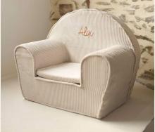 Achetez ce joli fauteuil club enfant personnalisé et tendance avec sa matière velours côtelé ! Idéal pour faire un cadeau de naissance aux bébés.