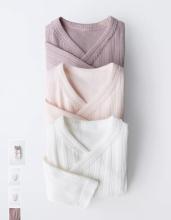 Lot de trois bodys avec col kimono et manches longues. Fermeture croisée avec boutons-pression et sur le bas.