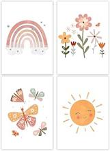 Vegena Lot de 4 tableaux pour chambre d'enfant et fille,Décoration pour chambre d'enfant,Arc-en-ciel soleil, nuage, fleurs et papillons,Décoration murale pour chambre de bébé,DIN A4,Décoration bohème : Amazon.fr: Bébé et Puériculture