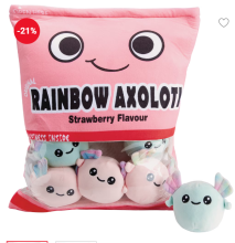 Câline et amusante, la peluche-coussin Capibara ou Axolotl combine douceur et surprise ! Avec son paquet rempli de mini peluches, elle est idéale pour jouer, décorer ou collectionner.