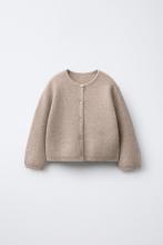 Gilet en maille à col rond et manches longues. Fermeture boutonnée sur le devant.