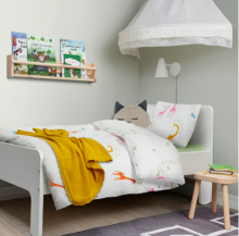 Une housse de couette et une taie d'oreiller merveilleusement douces avec un motif de girafes sur fond blanc. En coton tissé serré, un tissu qui respire pour une sensation de fraîcheur sur la peau de votre enfant toute la nuit.