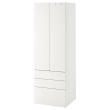 SMÅSTAD / PLATSA armoire-penderie, blanc blanc/avec 3 tiroirs, 60x57x181 cm Style sportif un jour ou plus chic le lendemain. À un certain âge, changez de style fait partie du quotidien. Cette penderie est assez grande pour accommoder tous ces changements.