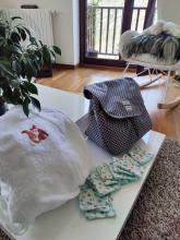 Ensemble d'habits et gigoteuse pour que notre Boubou découvre le monde à son aise.