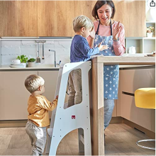 A partir du moment où les enfants tiennent debout seuls jusqu’à 6 ans (125 cm de hauteur). La tour EVO (évolution du modèle LT3 précédent) accompagne l’enfant pendant sa croissance, en ajustant la hauteur du plancher sur 3 hauteurs à : 30,40 ou 50 cm du sol. avec les nouveaux accessoires, il acquiert plus de polyvalence et de solidité, permettant de nombreuses utilisations goods et des fonctionnalités inédites. Système ANTI-ENJAMBEMENT breveté Bianconiglio Kids empêche les tout-petits de grimper sur la surface de travail en prenant appui sur la tour d’apprentissage.