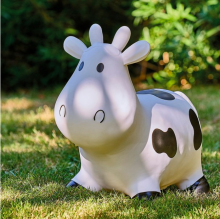 A la place des cornes, sur le haut de la tête, deux poignées ergonomiques permettent aux enfants de bien se tenir au ballon pendant les sauts. Le ballon se gonfle et se dégonfle pour se ranger facilement (la pompe de gonflage n'est pas fournie).