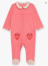 Grenouillère rose en côtes à fleurs et patchs fraises Sergent Major