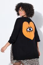 Cardigan coupe ouverte, motif « yeux-cœur » dans le dos, noir | Ulla Popken