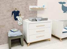 La commode Fenna combine le blanc opaque avec des accents en bois de hêtre naturel pour un look contemporain. Les trois spacieux tiroirs vous offrent un grand espace de rangement : idéal pour une chambre de bébé ordonnée. Et vous gardez tout ce dont vous avez besoin pour le change à portée de main. Les tiroirs possèdent un mécanisme de fermeture am