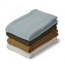 Lot de 4 langes "Léon" - coton biologique - Whale blue multi mix - 80 x 20 cm - LW12851