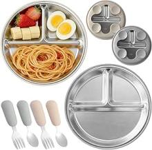 2 Pcs Assiettes En Acier Inoxydable Avec Ventouse BéBé Avec Un Lot De 2 CuillèRes Et Fourchettes, Ustensiles Pour Tout-Petits, Set Repas AntidéRapant Pour BéBéS Et Tout-Petits, Sans Bpa (Gris + Beige) : Amazon.fr: Cuisine et Maison
