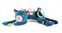 Grande panthère d'activités, accompagnée par son tout-petit, le caméléon et le papillon. Elle comporte un prisme, une spatule dentaire, un miroir, un cordon avec des perles et des petits gris-gris Son corps est doux et moelleux et peut servir de coussin.