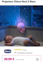J'aurai peut-être besoin de quelques étoiles au plafond pour me sentir mieux la nuit, si jamais j'ai peur du noir.. En plus, si je venais à pleurer, les sons s'activeraient tous seuls pour me rassurer. Si ça se trouve, je pourrais me rendormir sans même réveiller maman et papa..