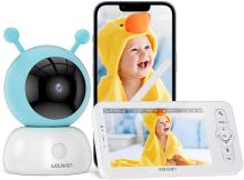 WOUWON Babyphone Caméra avec 5 inches LCD, Babyphones Vidéo,Caméra Bébé, Visiophone bébé, Visualisation à Distance et Moniteur,Vision Nocturne, Berceuses, Audio Bidirectionnel (Blue)