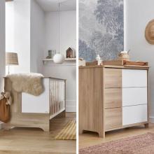 Cette chambre de bébé comprend un lit 70x140 cm et une commode.Vous pouvez la compléter avec le plan à langer qui va avec.