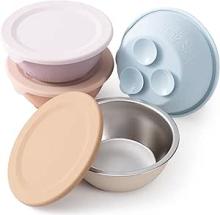 Moonkie Bols Bébé Inox avec Couvercles Silicone et Base Ventouse | Design Monobloc | Sans BPA | 13oz | Lave-vaisselle | Dès 4+ Mois | Lot de 4 (Rose Poudré/Lilas Brume/Bleu Pastel/Sable Chaud) : Amazon.fr: Bébé et Puériculture