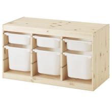 Les enfants ont besoin de place pour jouer, et de bons rangements pour leurs jouets. Comme TROFAST par exemple, une série de meubles en bois solides et de bacs en plastique légers et amovibles, facilement manipulables par votre enfant.