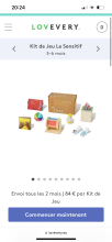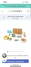 Il s’agit d’un kit, créé pour répondre à chaque stade du développement de l’enfant, tous les 2 mois, un kit est livré avec des jeux adaptés à l’enfant au moment T.