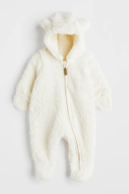 Combinaison en tissu peluche doux avec capuche surmontée d’oreilles. Modèle avec fermeture à glissière devant, surmontée d’un protège-menton et se prolongeant le long d’une jambe. Bord-côte repliable ...