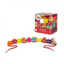 2 jeux en 1 : pour les tout-petits, 5 figurines en bois massif (hêtre) pour se raconter plein d’histoires et développer son imagination. Pour les plus grands, des perles à enfiler pour développer sa motricité, avec 2 grands cordons avec embouts rigides pour faciliter le passage dans les perles.