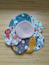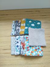6 grandes 'lavettes' essuie-tout en bambou confectionnées par Aurore Pierret. Ces lavettes seront très utiles pour essuyer les mains et le visage après les repas.