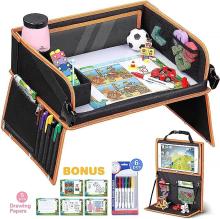 lenbest Double Fonction Plateau de Voyage, Plateau Voiture(Organisateur de Voiture) pour Enfant avec Film de Dessin Transparent, 5 Papier à Dessin et 6 Stylos - Noir/Orange : Amazon.fr: Fournitures de bureau