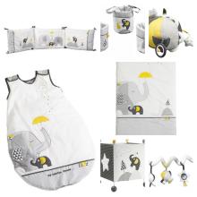 Gigoteuse, tour de lit, édredon, lot de 3 paniers de rangement, spirale, luminaire et balle d'activités de marque Sauthon Babyfan. Achetés en seconde main