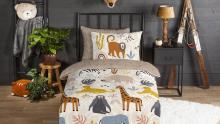 Les animaux sauvages s’invitent dans la chambre des enfants sur la housse de couette en flanelle Jungle de Good Morning. Flanelle 100% coton. Oeko-Tex.