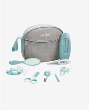 Trousse de Soin Compacte Grise 9 Accessoires Inclus BABYMOOV gris/bleu - A offrir ou à s'offrir, cette trousse de toilette très complète est idéale pour tous les déplacements avec bébé.