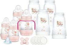 MAM Biberon Easy Start Lot de 8 biberons en formats de 130 ml, 160 ml et 260 ml, 1 sucette de démarrage nano, 4 tampons d'étanchéité, 1 bec extra doux et poignées, couleur rose, 730 g