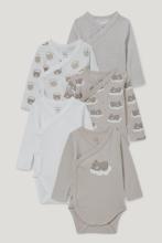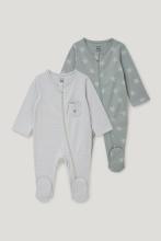 Salopette en maille mélangée avec encolure droite et bretelles croisées au dos à fermeture boutonnée sur le devant. Poche kangourou sur le devant.