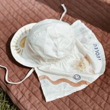 Schattige zonnehoed, bedrukt met handgeschilderde aquarelillustraties. De hoed heeft een lange flap zodat het nekje van jouw kindje beschermd is tegen de zon. M