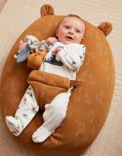 Accompagné d’une deuxième housse en jersey de coton BIO déhoussable avec harnais, il se transforme en coussin relax pour bébé (0-6M).