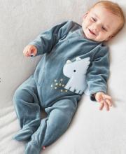 Le pyjama 1 pièce bleu canard en velours brodé d'un stégosaure bleu ciel en relief apporte douceur et confort pour le sommeil de bébé.