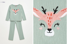 Ensemble pyjama long en matière douce et côtelée t-shirt + pantalon - 2 pièces - Vert